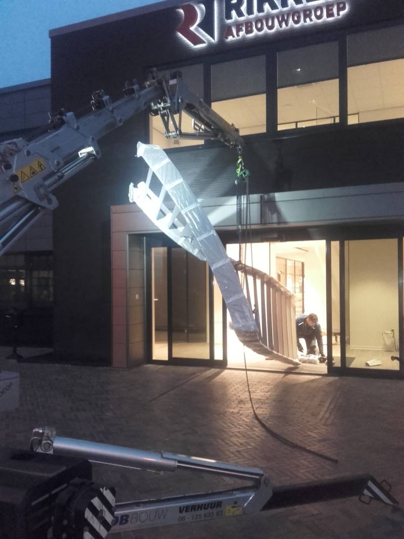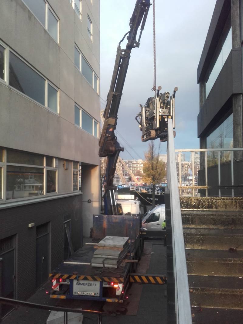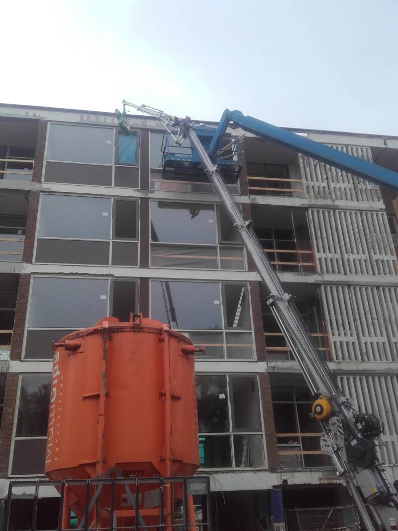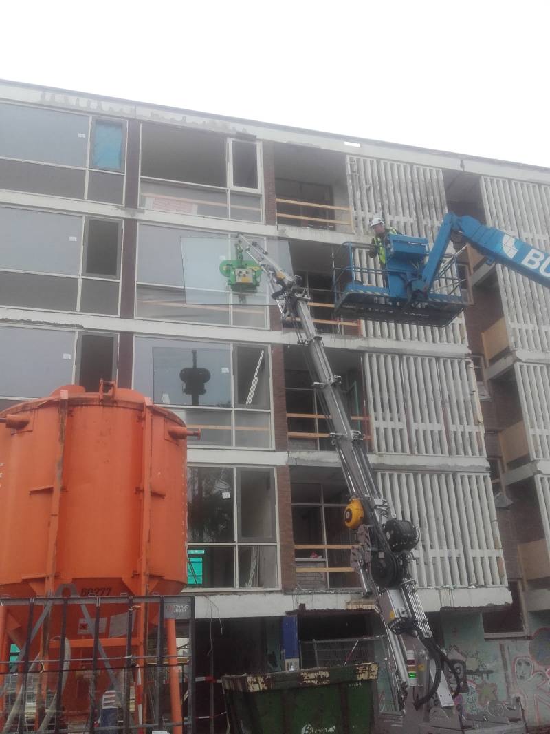 Glasbokken hijsen zodat de monteurs deze kunnen uitlopen , wel zo makkelijk en veilig