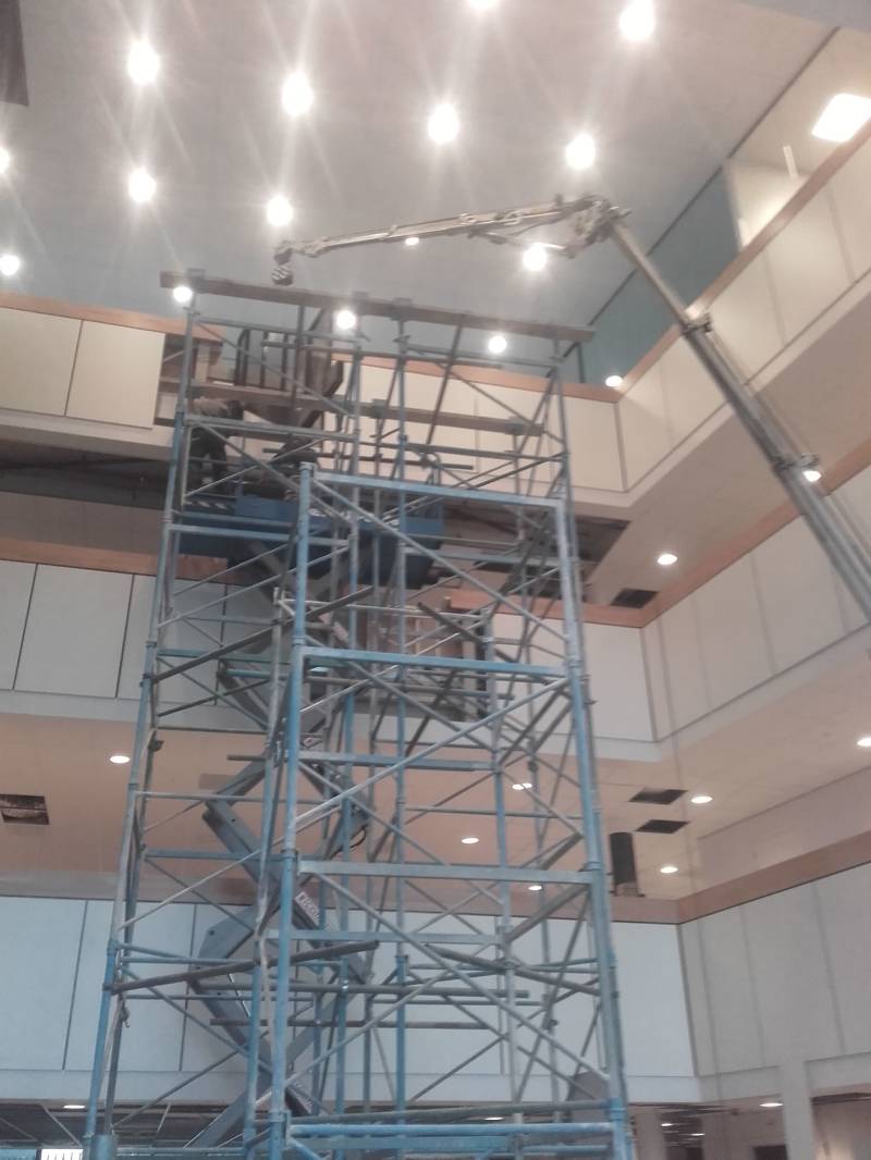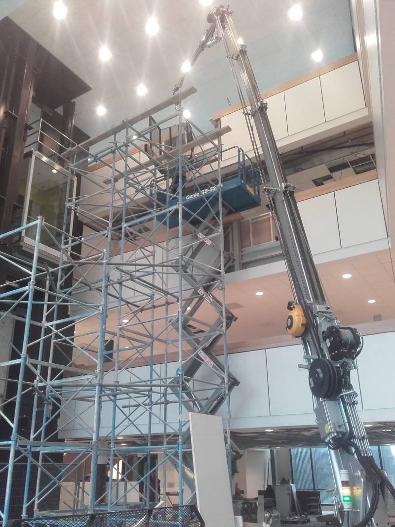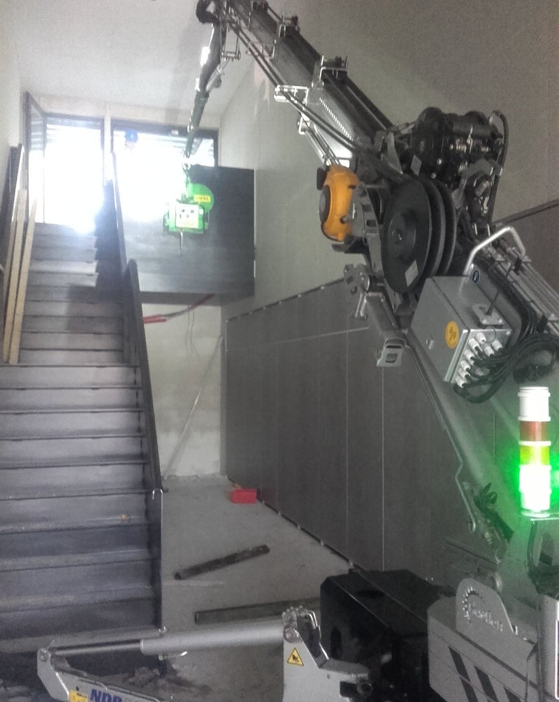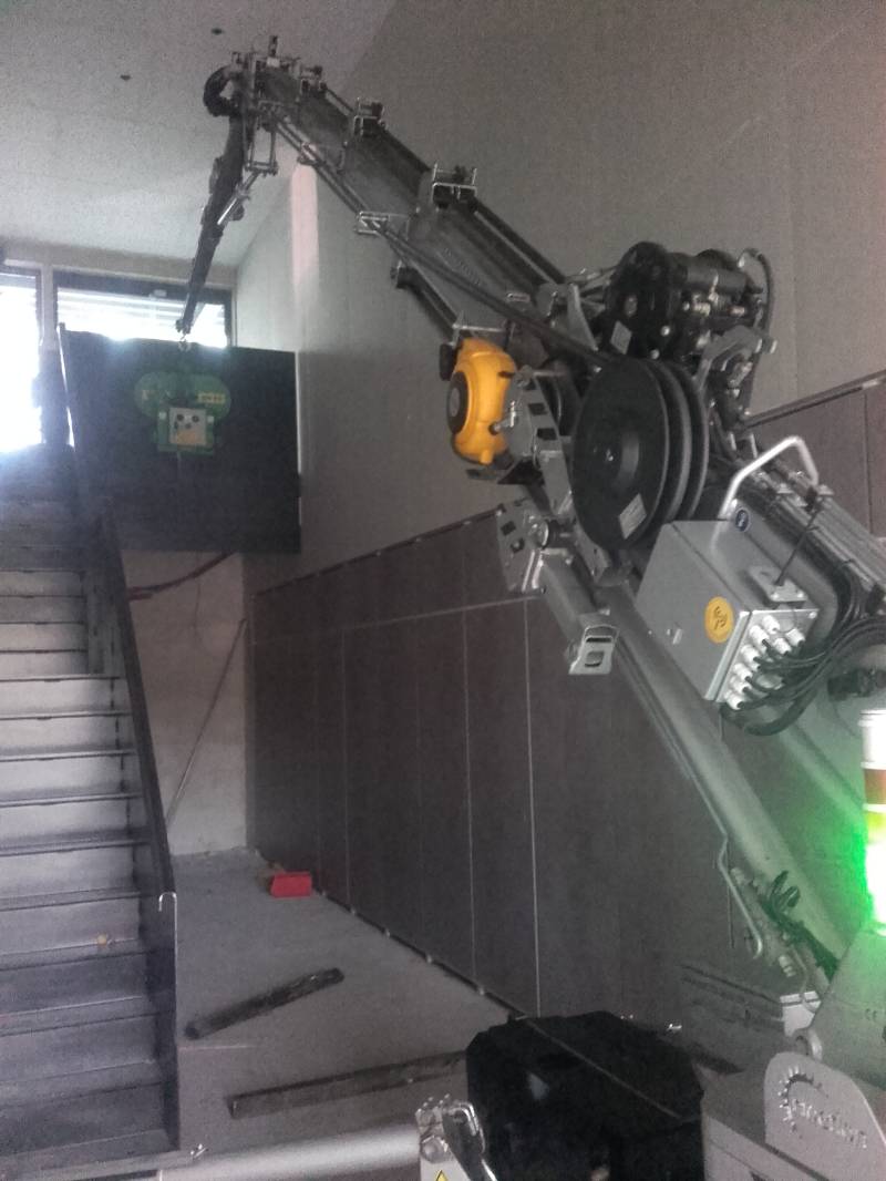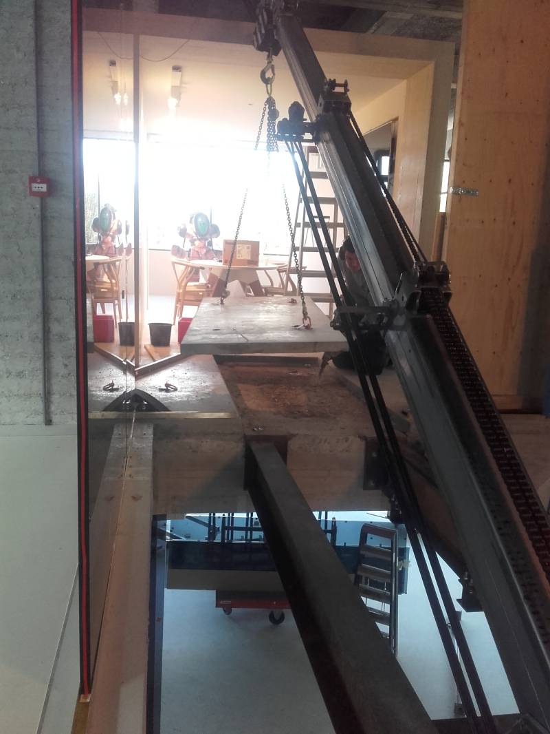Glasbokken hijsen zodat de monteurs deze kunnen uitlopen , wel zo makkelijk en veilig